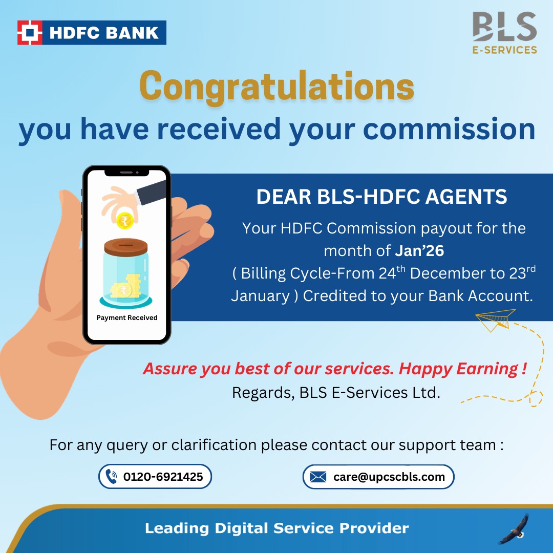 BLS Provides various EARN MONEY Services to its agents in this B2B module like Ayushmaan Bharat, PAN Card Service, Recharges (Telecom, DTH, FasTag, Data Card), Bill Payments (Electricity, Water, Gas, Telephone, etc.), Money Transfer (DMT), Travel Booking (including IRCTC), Aadhaar Payments (AEPS), Mini ATM, Assisted E-Commerce (Amazon Easy & Flipkart), Passport & Visa Applications, Insurance (Bike, Car, Commercial Vehicle, Health, Travel & Life), E-Learning (Make Money Online), Hamara Clinic (Doctor Consultation), Refurbished Mobile Phones, etc. with Best In the Industry Commission policy. We are authorized partners of Banks and relevant service providers. There are many more services lined up for launch to help you earn more.